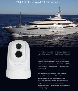 PATC-F Thermal PTZ Camera PRO Line serie has designed for large vessel thank to high level performance, flexible connections, video streaming and web interface, some additional software licences for Radar and Video tracking.